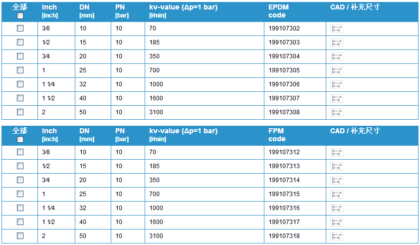 閥門個別配置(參見表格)